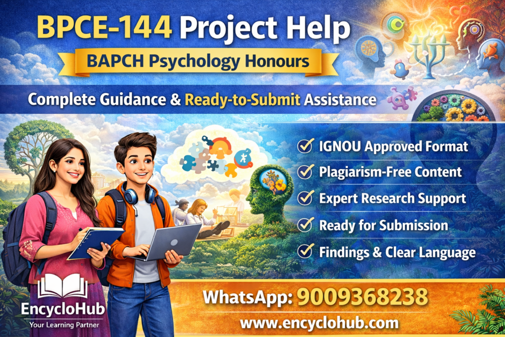 Psychology is the scientific study of human behavior, emotions, and mental processes. It helps us understand how individuals think, feel, and act in different situations. For students pursuing BAPCH (Bachelor of Arts Psychology Honours), the BPCE-144 Project is an important academic requirement that focuses on applying psychological concepts to real-life situations through research and analysis.