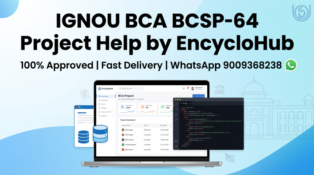 The BCSP-64 project is the final year requirement for IGNOU BCA students. It is designed to test your ability to apply theoretical knowledge in a practical environment. This project is not just paperwork — it is proof of your skills in software development and system design.