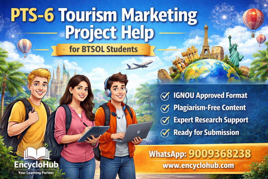 Tourism is one of the fastest-growing industries in the world, playing a significant role in economic development, employment generation, and cultural exchange. With the rise of digital platforms and global connectivity, tourism marketing has evolved into a highly dynamic and strategic field. For students pursuing BTSOL (Bachelor of Arts in Tourism Studies – Online), the PTS-6 Project on Tourism Marketing is an essential academic requirement that not only evaluates theoretical understanding but also tests practical application skills.